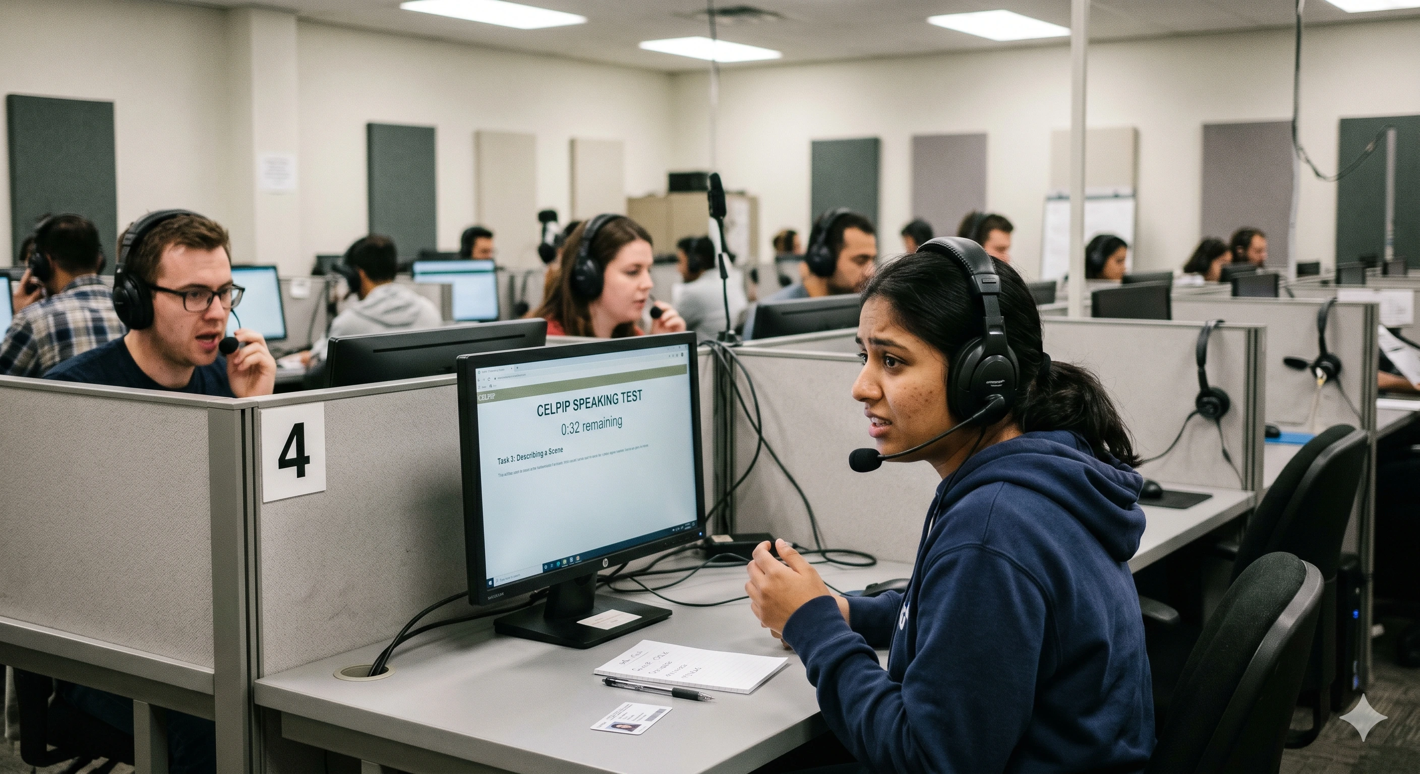 The CELPIP Speaking room feels weird—noise, headsets, and a timer. Here is how to get past awkwardness so listenability stays high when you chase CLB 9-style fluency.